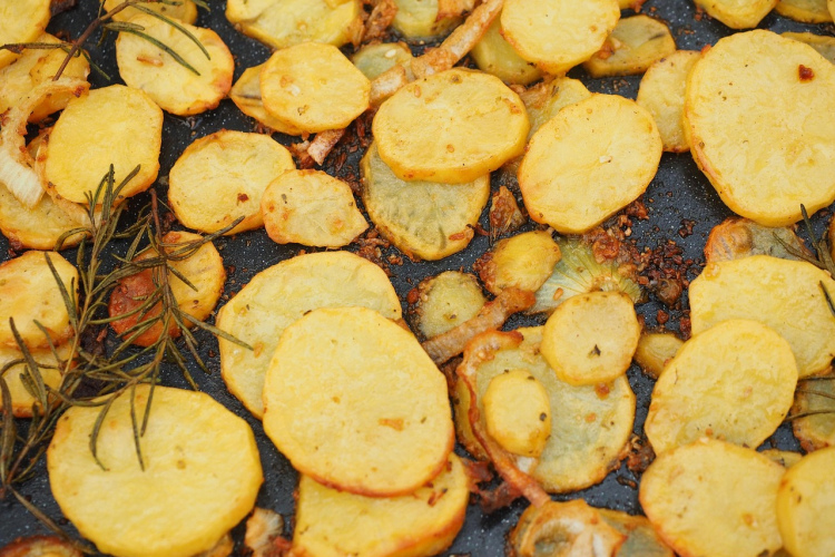 Cepti kartupeļi labi sader ar sīpoliem, kas ēdienam piešķir interesantāku un sulīgāku garšu. Soli pa solim cepšanas process izskatās šādi: