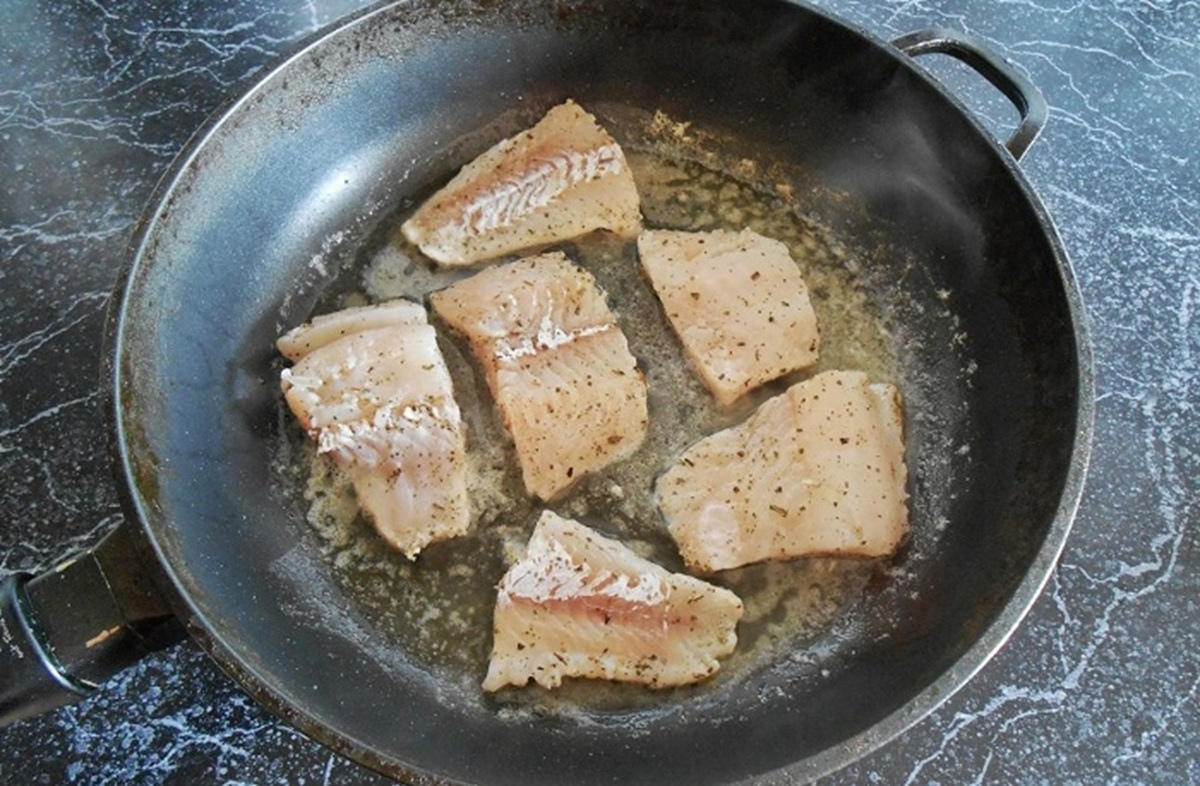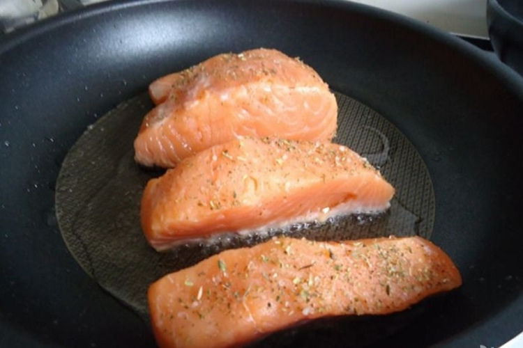 Ja pannas apakša nav uzkarsusi līdz vajadzīgajai temperatūrai, zivīs esošie proteīni sāk aktīvi izdalīt mitrumu un “cieši” saskaras ar pannu. Ņemiet vērā, ka panna ir jāuzkarsē rūpīgi, bet ne uz lielākās uguns, lai nepārspīlētu. No pannas jāsāk nākt viegliem dūmiem, un tikai tad var pievienot eļļu (tikai augu vai maisījumu ar sviestu). Kad tā sāk nedaudz burbuļot, var sākt gatavot.