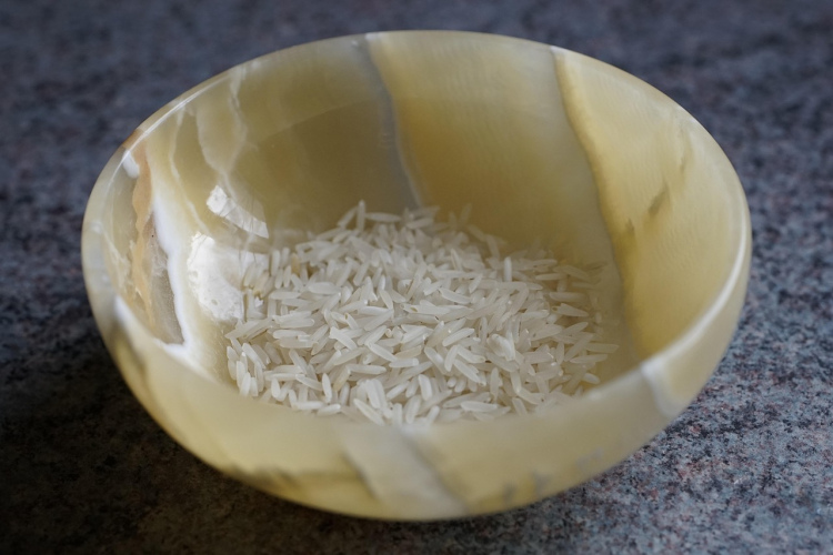 Smalki sakapājiet sīpolu un apcepiet līdz zeltaini brūnai krāsai. Pēc tam tos sajauciet ar vārītiem rīsiem.