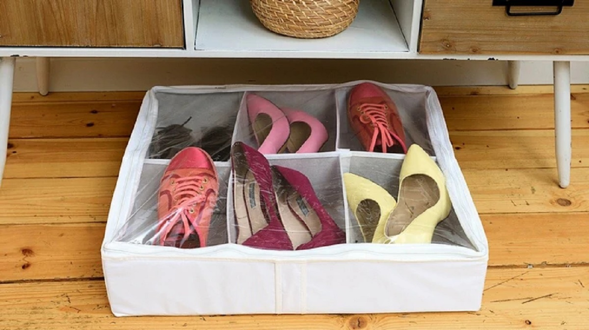 Mazgājami grozi vai caurspīdīgi konteineri. Ieteicams izmantot arī viegli tīrāmus konteinerus, lai apavus būtu viegli redzēt un tiem piekļūt.