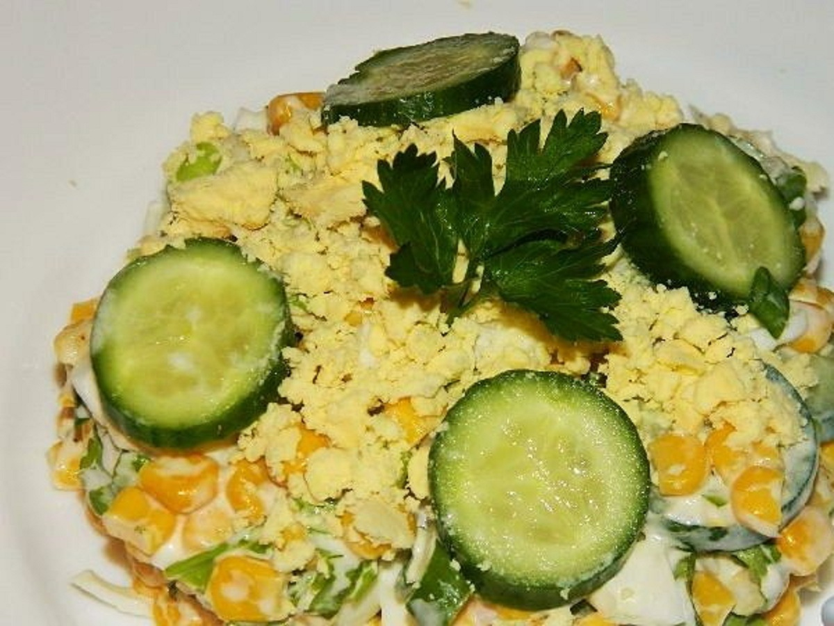Jums vajadzētu arī novārīt kartupeļus un olas. Pirms pasniegšanas notecinātu kukurūzu ievieto salātu bļodā.