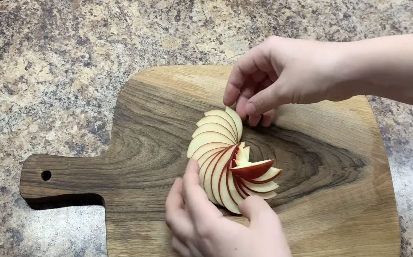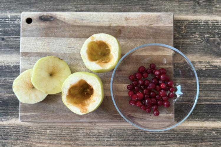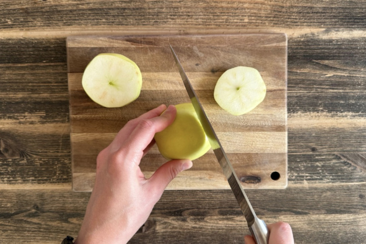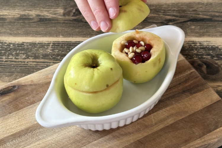 Paņem ābolus un nogriez virsējo “vāciņu”.