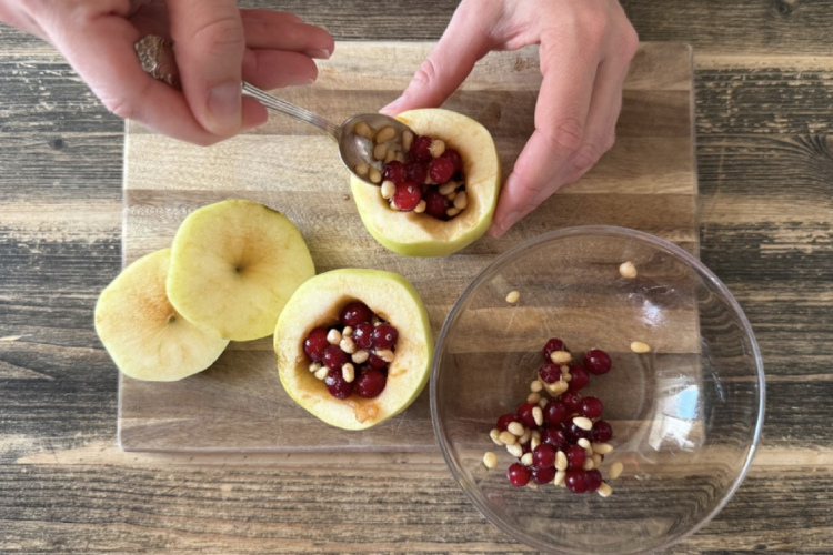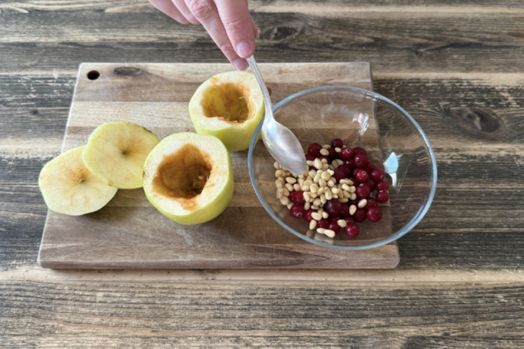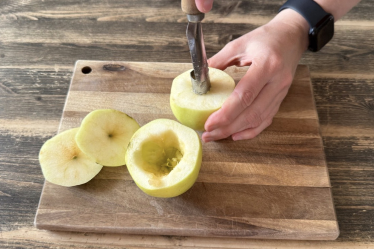 Izņem sēkliņas un nedaudz mīkstuma, lai izveidotos vieta pildījumam. Es izmantoju serdes izgriezēju, šādu:
