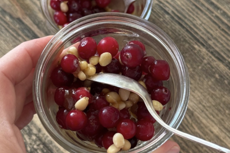 Atgādinājums: sastāvdaļas vari mainīt. Dzērveņu vietā der brūklenes, ciedru riekstus aizstāj ar valriekstiem.