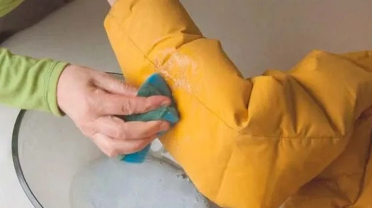 Lai 5 minūtēs notīrītu dažāda veida traipus un netīrumus no dūnu jakas bez mazgāšanas, paņemiet jaunu, iepriekš nelietotu virtuves sūkli, vēlams, mīkstu, lai nesabojātu audumu.