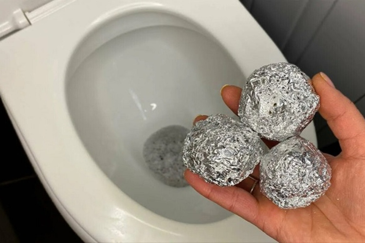 Pēc tam ielejiet tasi etiķa un ļaujiet maisījumam nostāvēties visu nakti. Etiķis un cepamā soda reaģēs, radot putas, kas palīdzēs noārdīt kaļķakmeni un citus nosēdumus. Savukārt folija darbosies kā maigs abrazīvs līdzeklis un palīdzēs fiziski atbrīvot aplikumu no tualetes sienām.