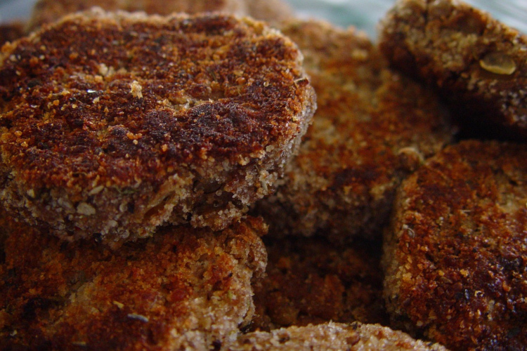 Cepiet pannā līdz zeltaini brūnai krāsai. Pēc tam lieciet uz ar cepampapīru izklātas cepšanas pannas un cepiet cepeškrāsnī 10 minūtes.