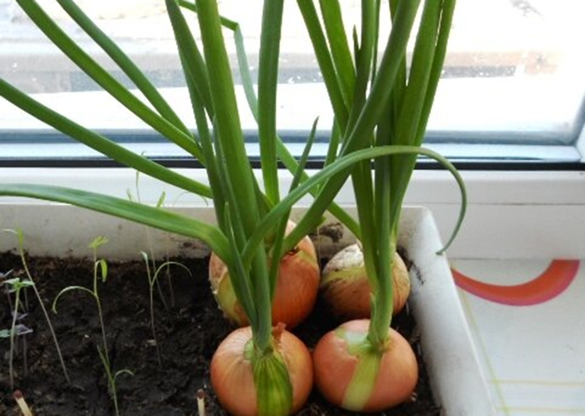 Lai iegūtu skaistus, sulīgus zaļumus, ieteicams kasti ar sīpoliem atstāt siltā vietā vairākas dienas, pat tumsā. Kad parādās pirmie dzinumi, pārvietojiet kasti uz palodzes, kur tie sāks spēcīgi augt, un dzeltenie dzinumi pārvērtīsies spilgtā zaļumā.
