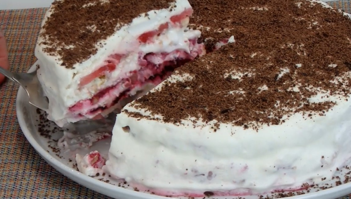 Garda, salda un unikāla kūka. Cepšana nav nepieciešama. Šo kūku ir viegli pagatavot viesiem 30 minūtēs. Un recepte nāk no dziedātājas Laimas Vaikules.