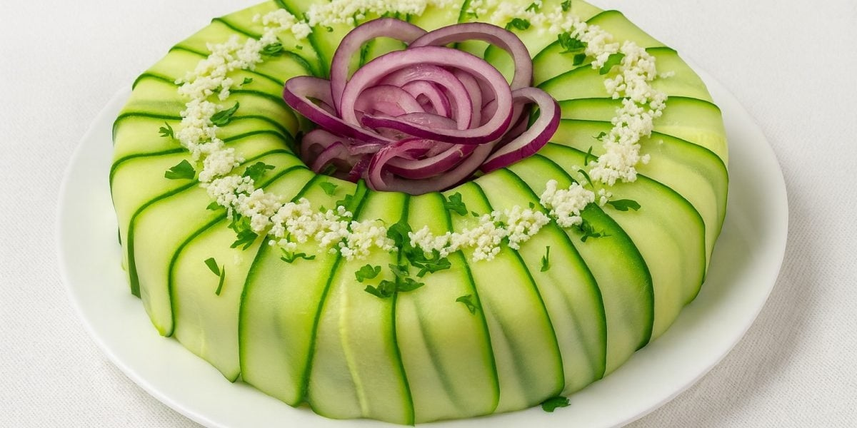 Sarkano sīpolu sagriež gredzenos un marinē etiķī ar šķipsniņu sāls un cukura. Pirms pievienošanas salātiem, izņem no marinādes un notecina. Gurķus sagriež plānās šķēlēs; noderīgs ir dārzeņu mizotājs.