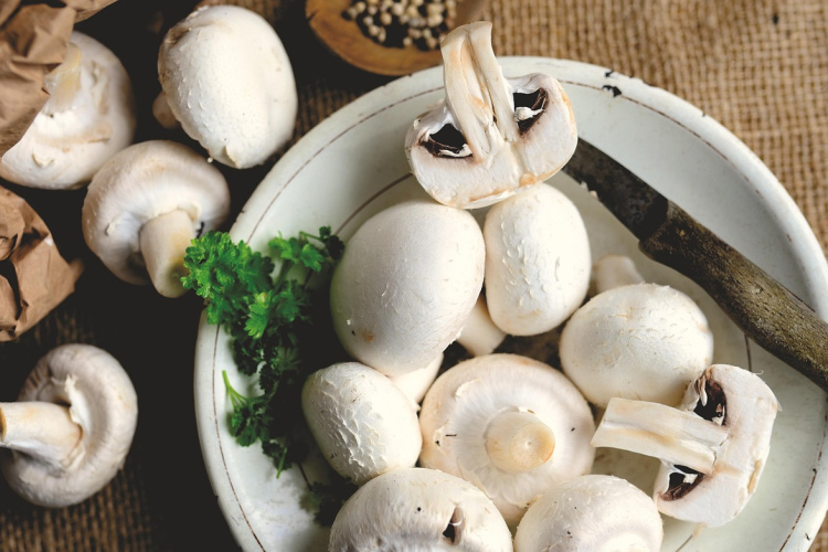 Sēnes un balto sīpolu sasmalcina un apcep, līdz tie ir mīksti. Ļauj atdzist. Vāri vistas stilbus sālsūdenī, atdzesē, atdali gaļu no kaula un sagriež kubiņos.