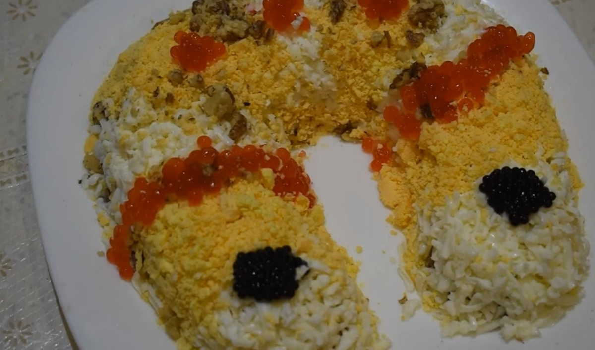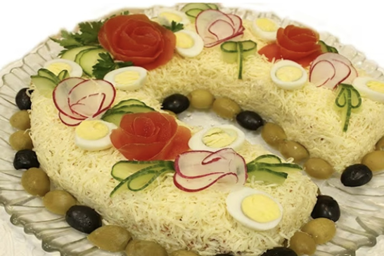 Pakava formas salāti Jaunajam gadam ir īsta garšu simfonija, kur maiga vista harmoniski apvienojas ar saldām žāvētām plūmēm un pikantiem marinētiem gurķiem. Pakava forma, kas simbolizē pārpilnību un aizsardzību, apvienojumā ar košām sastāvdaļām padarīs jūsu svētku galdu patiesi greznu. To ir diezgan vienkārši pagatavot, bet rezultāts pārsniegs visas cerības!