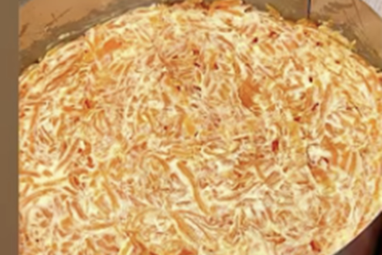 Pēc tam sastāvdaļas kārtojiet šādā secībā: sarīvēti kartupeļi, majonēzes kārta, sarīvēti burkāni, vēl majonēze, sagrieztas zivs filejas, majonēze, svaigu gurķu šķēles, majonēze, marinētu sīpolu riņķi, majonēze, sarīvētas olas, majonēze, sarkanā zivs, majonēze un visbeidzot sarīvēts siers.