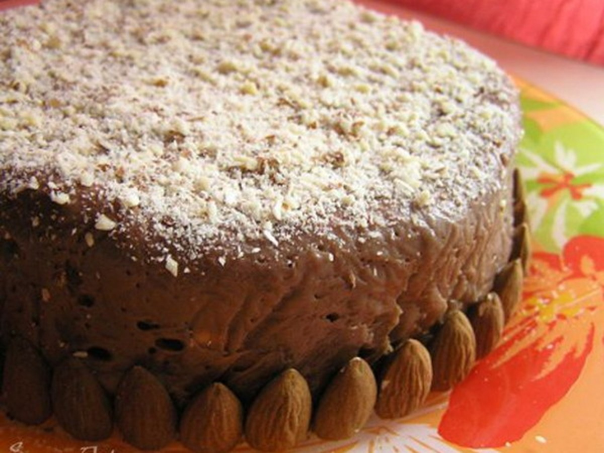 Pirms kūkas pasniegšanas, izņem to no formas, apgriez otrādi uz šķīvja un uzmanīgi noņem pārtikas plēvi. Pēc izvēles dekorē ar mandelēm.