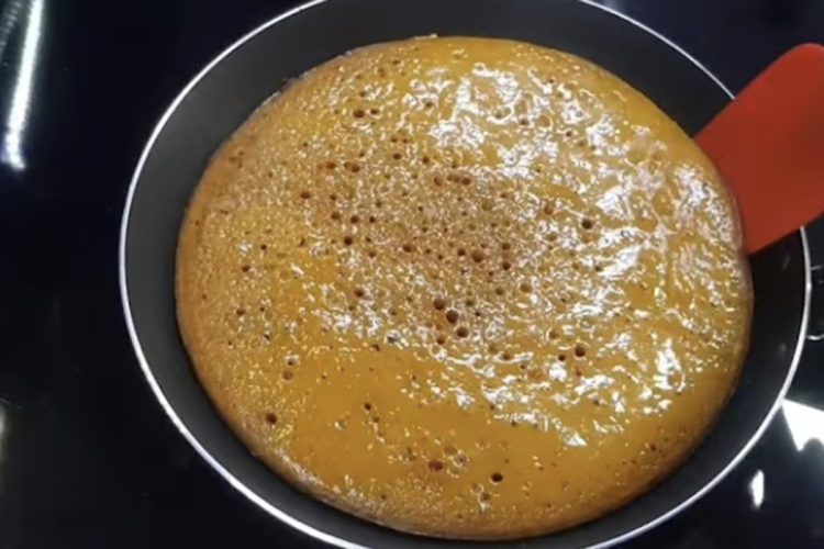 Sāciet ar medus maisījuma sagatavošanu. Ielejiet pannā 100 g medus un karsējiet uz vidējas uguns, nepārtraukti maisot, apmēram 1-2 minūtes. Pēc tam pievienojiet lielu daudzumu cepamās sodas. Esiet uzmanīgi, jo maisījums sāks spēcīgi putot!