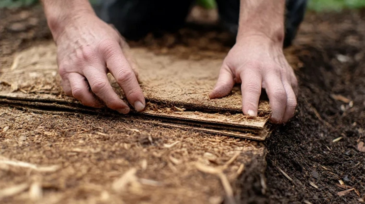 Vienkāršība ir atslēga, tāpēc nebaidieties kombinēt kartonu ar citiem dārzā pieejamiem materiāliem, piemēram, sausām lapām vai šķeldu.