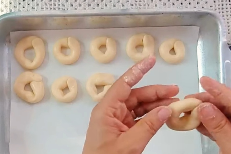 Šajā posmā nav jātiecas pēc perfektas simetrijas, jo mājās gatavotiem cepumiem piestāv neliela nevienmērība. Vienkāršība ir atslēga, tāpēc gredzenus veido raiti, lai mīkla rokās nesāktu pārlieku silst. Gatavos gredzenus kārto uz cepamās plāts, kas izklāta ar pergamentu, atstājot nelielas atstarpes, jo cepumi karstumā nedaudz palielināsies.