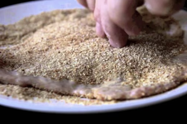 Vienmēr svarīgi pārbaudīt, vai gaļa ir sausa, jo tas garantē, ka milti un pārējais panējums labi turēsies klāt un cepšanas laikā neatlips.