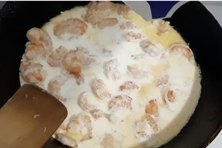 Lai ēdiens izdotos, svarīgi ievērot sastāvdaļu proporcijas, kas nodrošina mērces konsistenci. Šai receptei nepieciešami aptuveni 700 grami garneļu un viena glāze piena ar zemu tauku saturu (piemēram, 1%).