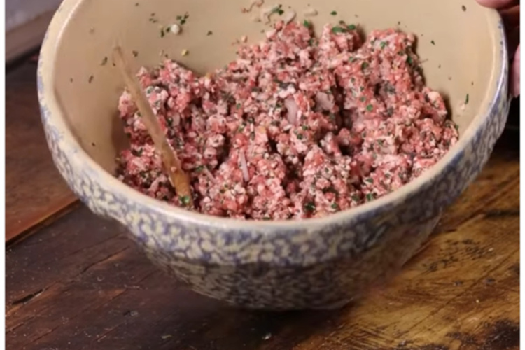 Svarīga loma ir arī zaļumiem – nepieciešama viena buntīte sasmalcinātas salvijas un pētersīļu. Salvija ir klasiska cūkgaļas pavadone, kas palīdz izcelt gaļas dabisko garšu. Kad visas sastāvdaļas ir sagatavotas, tās lielā bļodā jāsajauc līdz viendabīgai masai.