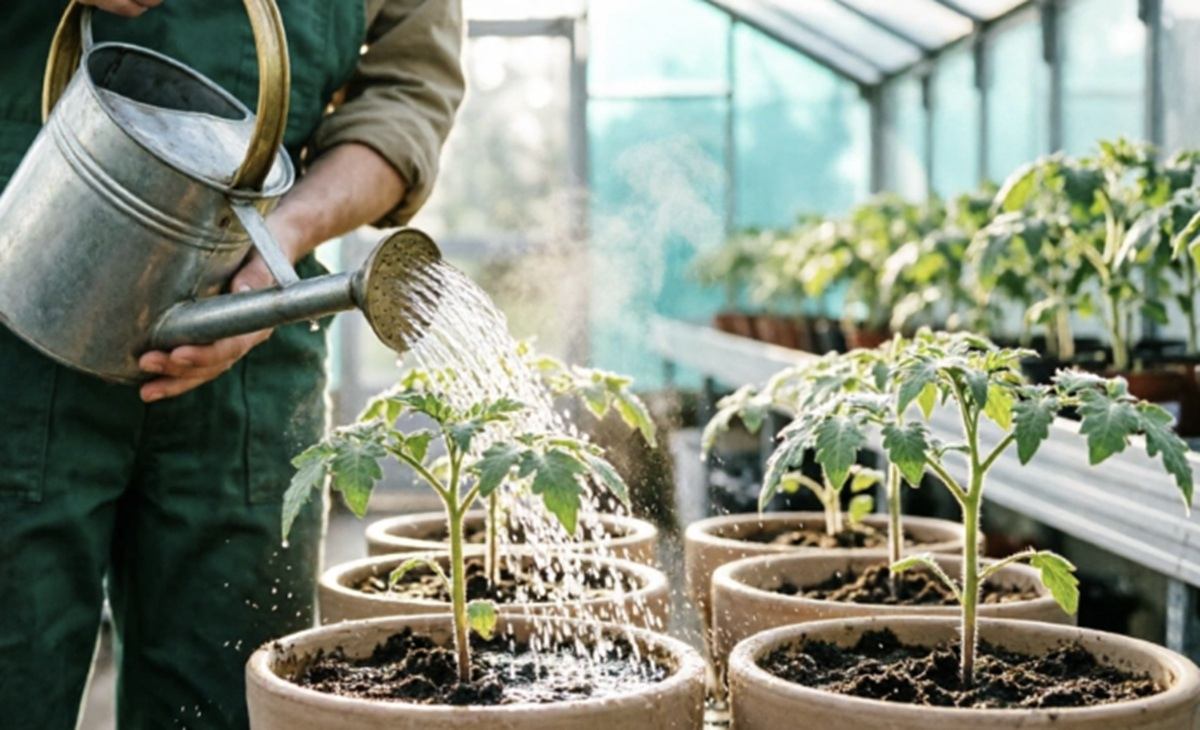Kad tomātu stādi ir nonākuši siltumnīcas augsnē, dārzniekam ieteicams ieturēt pauzi un tiešā veidā neiejaukties augšanas procesā. Aptuveni pirmo nedēļu augus nav vēlams ne laistīt, ne mēslot, ne arī irdināt zemi ap tiem. Tas var šķist neparasti, taču šāds miers palīdz saknēm pašām meklēt mitrumu dziļākos augsnes slāņos.