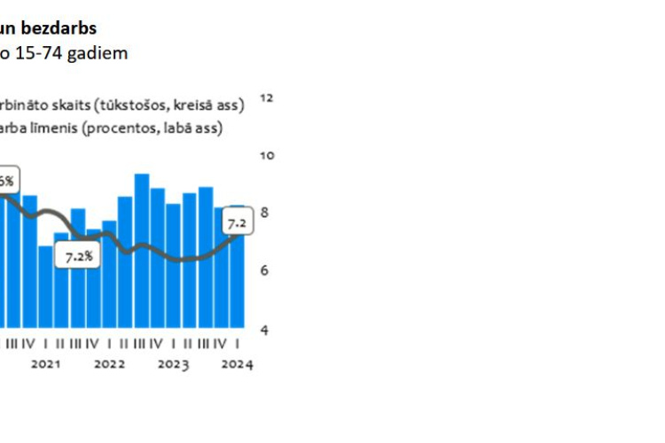 Jāatzīmē, ka nodarbinātības līmenis Latvijā joprojām saglabājās zemāks nekā kaimiņos - par 4,4 procentpunktiem zemāks nekā Igaunijā (2024. gada 1. ceturksnī - 68,4%), bet par 0,7 procentpunktiem zemāks nekā Lietuvā (2024. gada 1. ceturksnī - 64,7%).