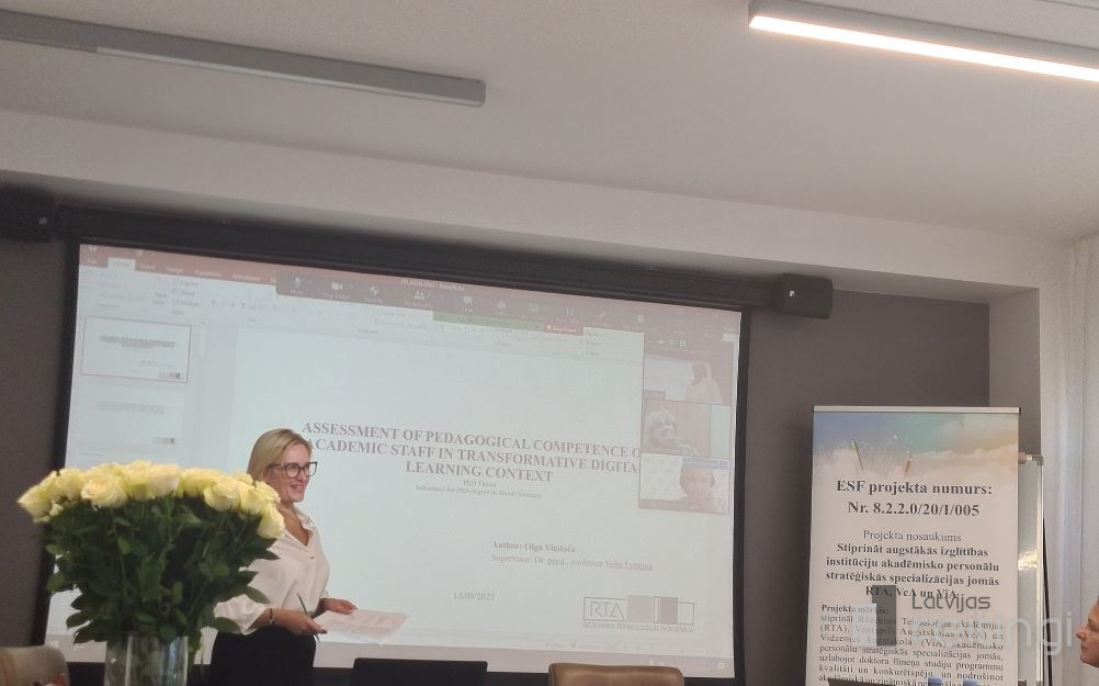 13. septembrī Latvijas Universitātes Promocijas padomes izglītības zinātnēs atklātā sēdē Olga Vindača aizstāvēja promocijas darbu par tēmu “Assessment of pedagogical competence of academic staff in transformative digital learning context” (Ph. D.) iegūšanai. Promocijas darba vadītāja profesore Velta Ļubkina.