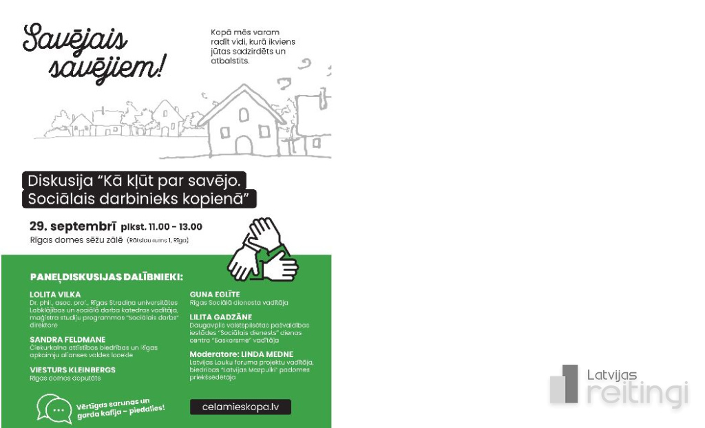 Diskusija notiks piektdien, 29.septembrī, no plkst. 11:00-13:00 Rīgas Domes zālē, Rātslaukumā 1, un visiem interesentiem būs skatāma tiešsaistē Labklājības ministrijas Facebook kontā: šeit>>.