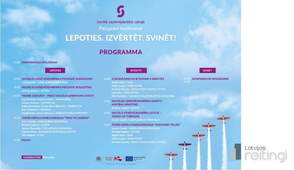 Lai atskatītos un izvērtētu paveikto un kopīgās sarunās iezīmētu nozares tālāko attīstību, Labklājības ministrija 12. oktobrī organizē sociālās uzņēmējdarbības piecgadei veltītu konferenci “Lepoties. Izvērtēt. Svinēt!” un aicina vērot tās tiešraidi.