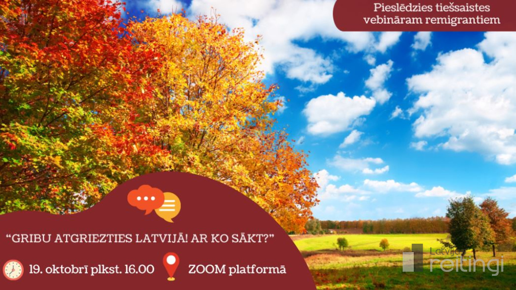 Dalībai 19. oktobra vebinārā “Gribu atgriezties Latvijā! Ar ko sākt?” jāreģistrējas elektroniski, aizpildot pieteikšanās anketu šeit: https://forms.gle/rgLhMqCxfi7U1kA99.