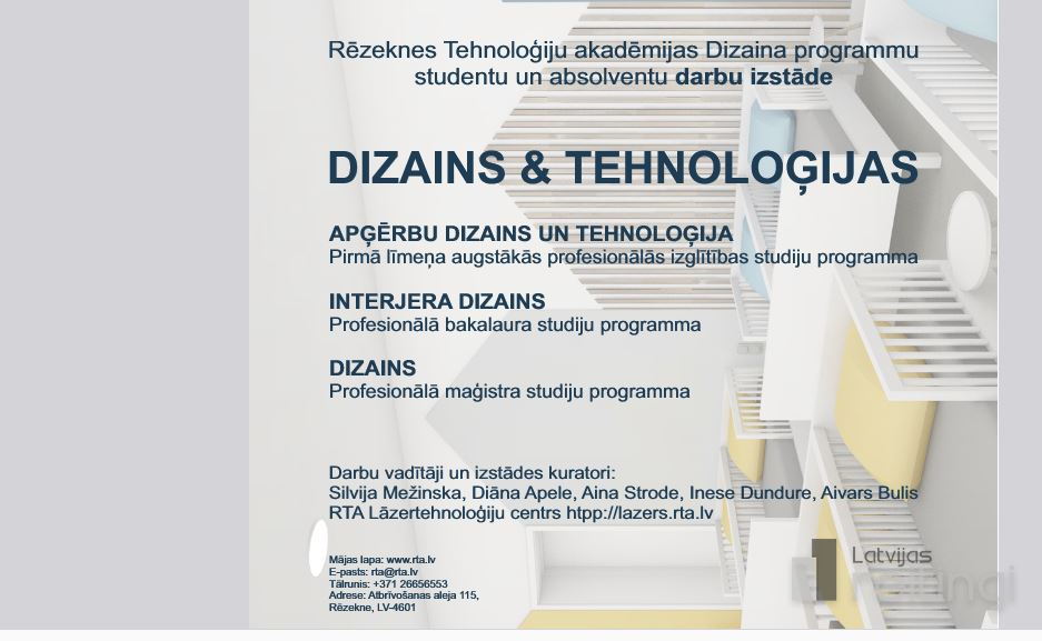 Dizaina jēdziens pilnveidojas līdz ar dizaina nozares izaugsmi, un tiek attiecināts gan uz materiālu, gan nemateriālu vērtību radīšanu. Dizaina klātbūtne (izpratne un pielietošana) ir likumsakarīgi saistīta ar inovāciju un konkurētspējas veicināšanu gan tradicionālajās industrijās, to radītajos produktos un pakalpojumos, gan sociālajā sfērā, gan vides un informācijas kvalitātē un tās pieejamībā, gan teritoriālajā attīstībā. Dizains vienmēr tiek skatīts starpdisciplinārā kontekstā, jo tiek virzīts uz sabiedrības vajadzību risināšanu dažādās jomās. Rēzeknes Tehnoloģiju akadēmija ir vieta, kas nodrošina kvalitatīvu un radošu studiju vidi profesionālajai attīstībai. Rēzeknes Tehnoloģiju akadēmija ir Tavs staRTA punkts Rēzeknē!