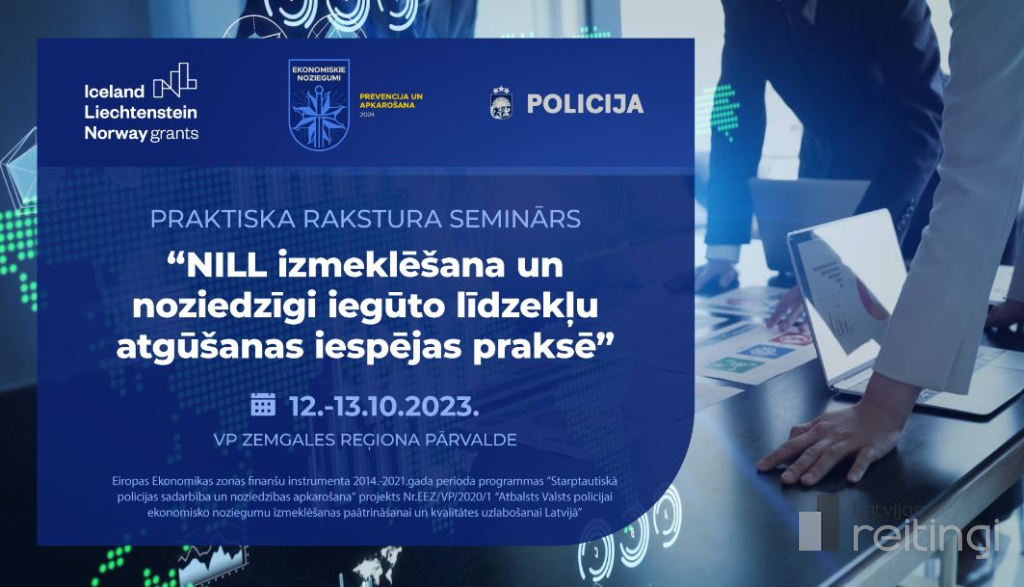 Semināri par noziedzīgi iegūtu līdzekļu legalizācijas gadījumiem norisinās Eiropas Ekonomikas zonas finanšu instrumenta 2014.–2021. gada perioda programmas “Starptautiskā policijas sadarbība un noziedzības apkarošana” projekta Nr. EEZ/VP/2020/1 “Atbalsts Valsts policijai ekonomisko noziegumu izmeklēšanas paātrināšanai un kvalitātes uzlabošanai Latvijā” ietvaros.