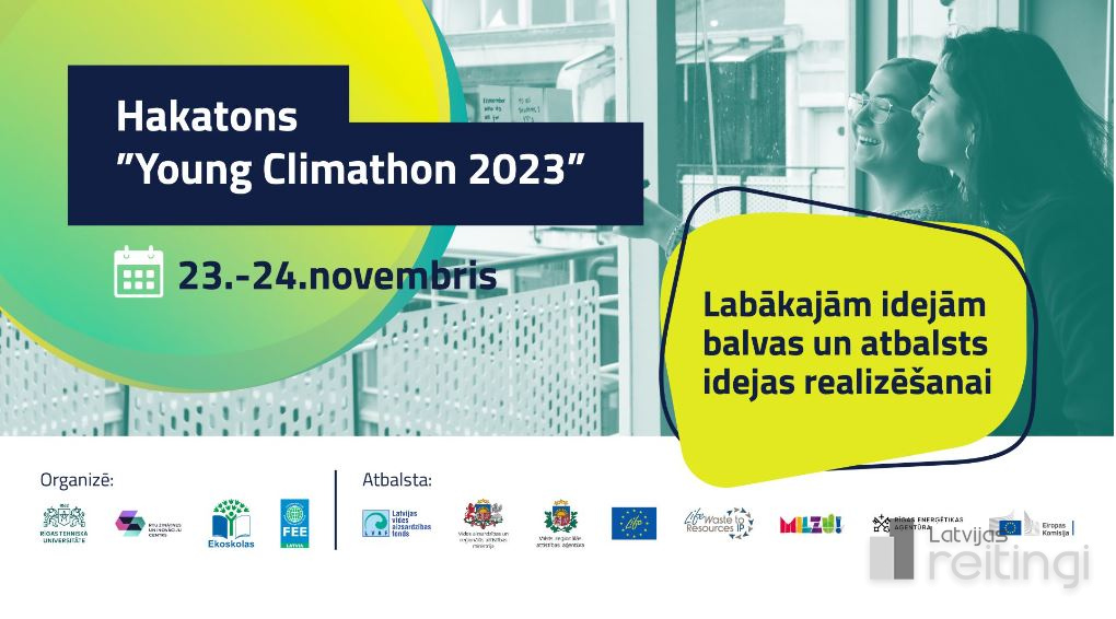 23. un 24. novembrī Latvijas skolēni trešo reizi pulcēsies hakatonā «Young Climathon», lai radītu inovatīvus risinājumus aktuālām vides problēmām un ar savu piemēru iedvesmotu gan vienaudžus, gan citas paaudzes lietot resursus atbildīgāki, lai mūsu ikdiena kļūtu klimatam draudzīgāka. Pirms hakatona – 9. un 16. novembrī – skolēni, skolotāji un ikviens interesents aicināts piedalīties tiešsaistes vebināros un izzināt aprites ekonomikas principus un idejas, kā samazināt pārtikas atkritumus.