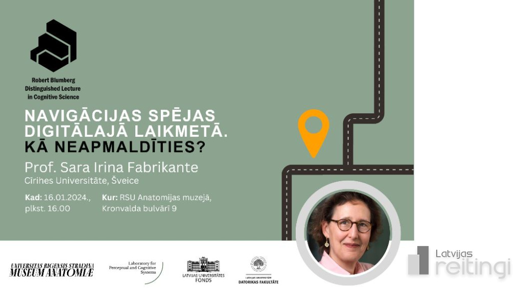 Kā nekļūt atkarīgam no navigācijas sistēmām? Rīgā norisināsies lekcija par digitālo navigācijas rīku ietekmi uz cilvēku spēju orientēties Ar lekciju "Navigācijas spējas digitālajā laikmetā. Kā neapmaldīties?" janvārī Rīgā uzstāsies viena no pasaulē nozīmīgākajām kognitīvās ģeogrāfijas un ģeogrāfisko vizualizāciju pētniecēm, Cīrihes Universitātes profesore Sara Irina Fabrikante (Šveice). Lekcija notiks 16. janvārī plkst. 16.00 RSU Anatomijas muzejā. Profesore Rīgā viesosies Roberta Blumberga un LU DF Uztveres un kognitīvo sistēmu laboratorijas izveidotās ikgadējās izcilības lekcijas kognitīvajā zinātnē ietvaros, kas šogad norisināsies sadarbībā ar RSU Anatomijas muzeju.