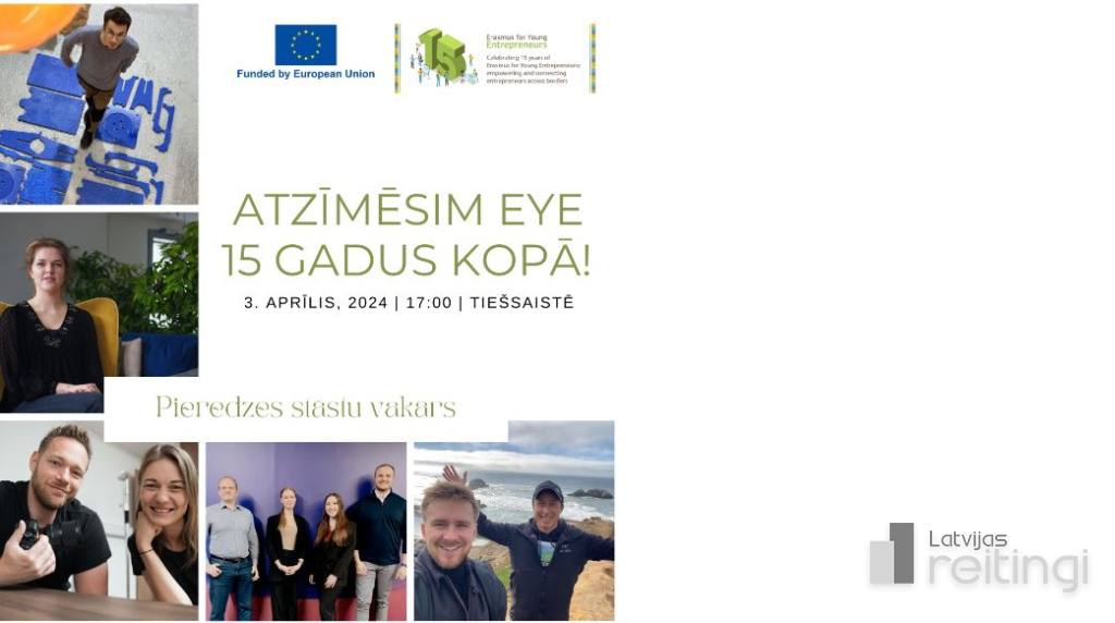 Erasmus Jaunajiem Uzņēmējiem (EYE) ir Eiropas Savienības finansēta programma, kas piedāvā jaunajiem un topošajiem uzņēmējiem doties biznesa apmaiņā pie pieredzējušiem uzņēmējiem ārzemēs ar mērķi attīstīt un validēt savu biznesa ideju. Viens no programmas kontaktpunktiem Latvijā ir "CIVITTA Latvija", kas 3.aprīlī pulksten 17:00 rīkos tiešsaistes pasākumu, lai atzīmētu programmas 15 gadu jubileju. Pasākuma laikā savā pieredzē dalīsies vairāki programmas absolventi - jaunie uzņēmēji. Pieteikšanās pasākumam ir obligāta!