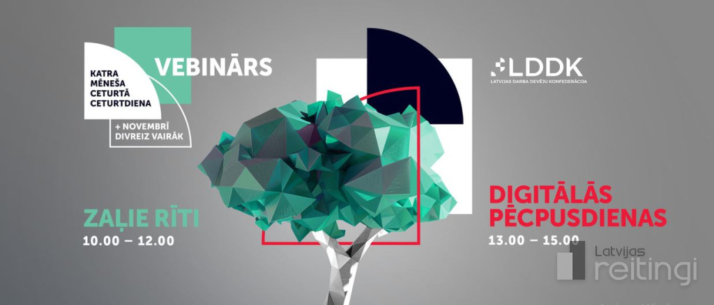 Bezmaksas vebināri, kurus LDDK rīko sadarbībā ar “BusinessEurope”, notiks līdz pat novembrim – katra mēneša ceturtajā ceturtdienā, turklāt novembrī būs papildu vebinārs. Katru reizi ir divas sesijas – “Zaļie rīti” no pulksten 10.00 līdz 12.00 ir veltīti klimata un ilgtspējīgas zaļās pārejas tematiem, “Digitālās pēcpusdienas” no pulksten 13.00 līdz 15.00 – tematiem, kas saistīti ar digitālo transformāciju.