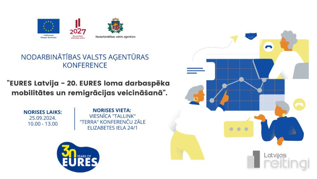 2024. gada 25. septembrī no plkst. 10.00 līdz 13.00 viesnīcas "Tallink Hotel Riga" konferenču zālē "Terra" (Elizabetes ielā 24/1, Rīgā) norisināsies Nodarbinātības valsts aģentūras un EURES* rīkotā konference "EURES Latvija - 20. EURES loma darbaspēka mobilitātes un remigrācijas veicināšanā". Nozares profesionāļi, amatpersonas un eksperti konferencē apspriedīs EURES lomu darbaspēka mobilitātes un remigrācijas veicināšanā, diskutēs par ieguvumiem, iespējām un izaicinājumiem, būs arī remigrantu pieredzes stāsti. Pasākums tiek rīkots Eiropas Sociālā fonda (ESF) Plus projekta "EURES tīkla darbības nodrošināšana Latvijā" ietvaros.