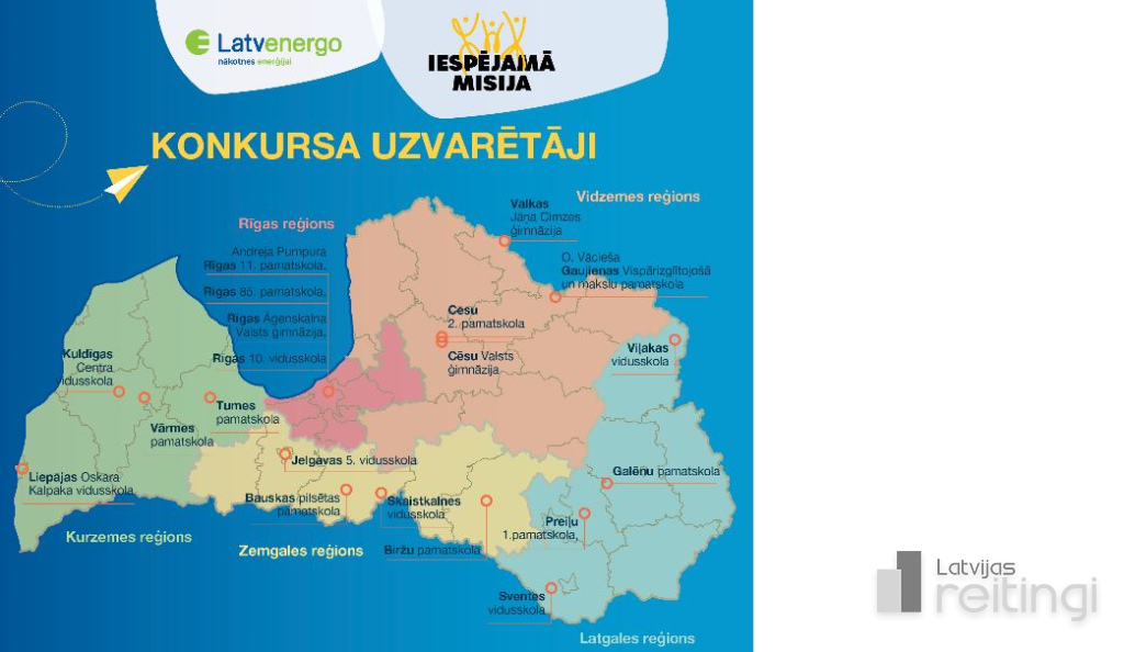 AS "Latvenergo" un nodibinājuma "Iespējamā misija" izsludinātajā konkursā noskaidrotas 20 Latvijas vispārējas izglītības iestādes, kas saņems nepieciešamo fizikas kabineta aprīkojumu mācību procesa pilnveidei. Deviņas no iepriekšējos gados aprīkojumu saņēmušām skolām jau ir sekmīgi piedalījušās Latvijas atklātajā fizikas olimpiādē.