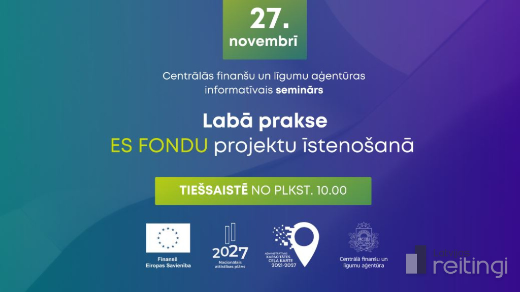 Trešdien, 27. novembrī, notiks tiešsaistes seminārs "Labā prakse ES fondu projektu īstenošanā", kur Centrālās finanšu un līgumu aģentūras (CFLA) un pieaicinātie eksperti informēs par aktualitātēm Eiropas Savienības (ES) fondu jomā.