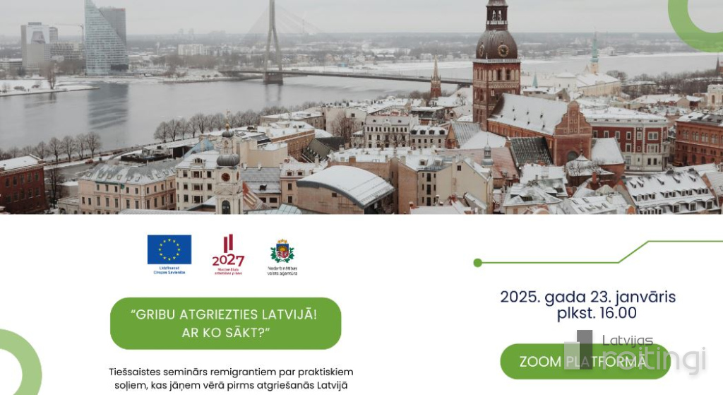 2025. gadā NVA un EURES semināri “Gribu atgriezties Latvijā! Ar ko sākt?” tiešsaistes platformā Zoom norisināsies 23. janvārī, 24. aprīlī, 24. jūlijā un 23. oktobrī. Katra tiešsaistes semināra ilgums – 1 stunda, sākums - plkst.16.00 pēc Latvijas laika
