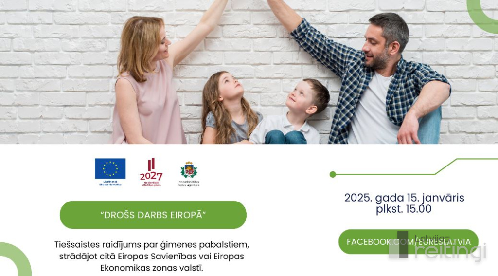 2025. gada pirmais cikla “Drošs darbs Eiropā” raidījums būs skatāms 15. janvārī plkst. 15.00 pēc Latvijas laika EURES Latvia Facebook lapā: https://www.facebook.com/eureslatvia. NVA EURES konsultante Renāte Prēdele sarunā ar Valsts sociālās apdrošināšanas aģentūras (VSAA) Pabalstu metodiskās vadības daļas vecāko eksperti Simonu Innus-Pāvelskopi skaidros ģimenes pabalstu piešķiršanas kārtību un saņemšanas nosacījumus gadījumos, ja vienas ģimenes locekļi strādā dažādās ES vai EEZ valstīs. Raidījuma translācijas sekotāji EURES Latvia Facebook lapas komentāru sadaļā varēs uzdot arī savus jautājumus, kā arī vienoties par attālinātu konsultāciju. Raidījuma veidotāji atgādina – profesionālo ekspertu konsultācijas ir būtisks priekšnosacījums, lai zinoši, droši un efektīvi izmantotu Eiropas vienotā darba tirgus iespējas un priekšrocības.