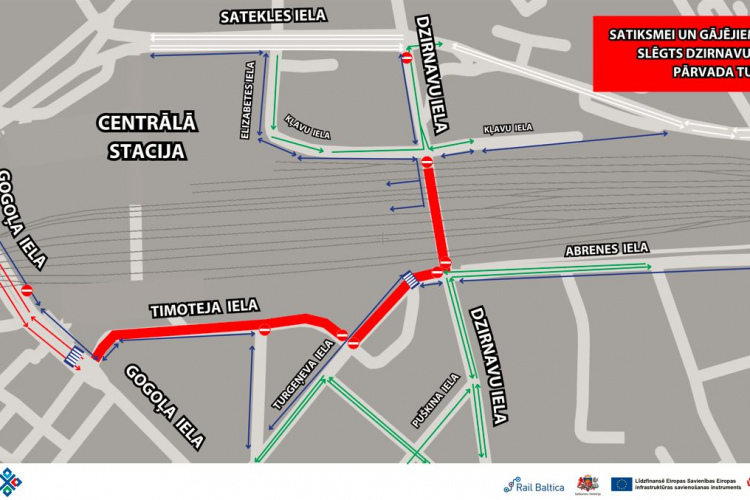 Rīgā turpinās intensīvi Rail Baltica dzelzceļa pārvadu izbūves darbi. Jūlija noslēgumā Rail Baltica Rīgas Centrālā mezgla būvnieks BERERIX uzsāks Dzirnavu ielas dzelzceļa pārvada būvniecību. Pārvada izbūves laikā, no 24. jūlija līdz 31. augustam, Dzirnavu ielā, posmā no Satekles ielas līdz Turgeņeva ielai, tiks ierobežota un daļēji slēgta visa veida transportlīdzekļu satiksme un gājēju pārvietošanās, savukārt posms no Kļavu ielas līdz Abrenes ielai tiks slēgts pilnībā. Pirms darbu uzsākšanas Dzirnavu ielā, tiks atjaunota pilnvērtīga četru joslu satiksme Lāčplēša ielā.
