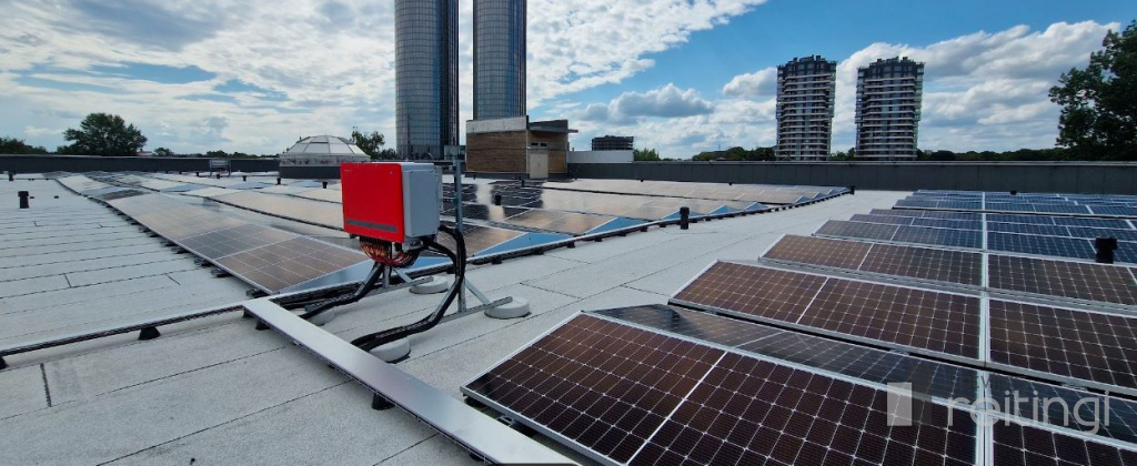Uz tirdzniecības centra jumta izvietots 4059 kvadrātmetru saules paneļu parks