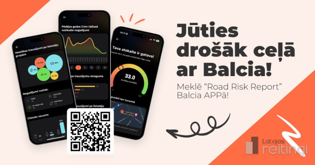 “Balcia” aplikācijā pieejams drošības rādītājs “Road Risk Report”