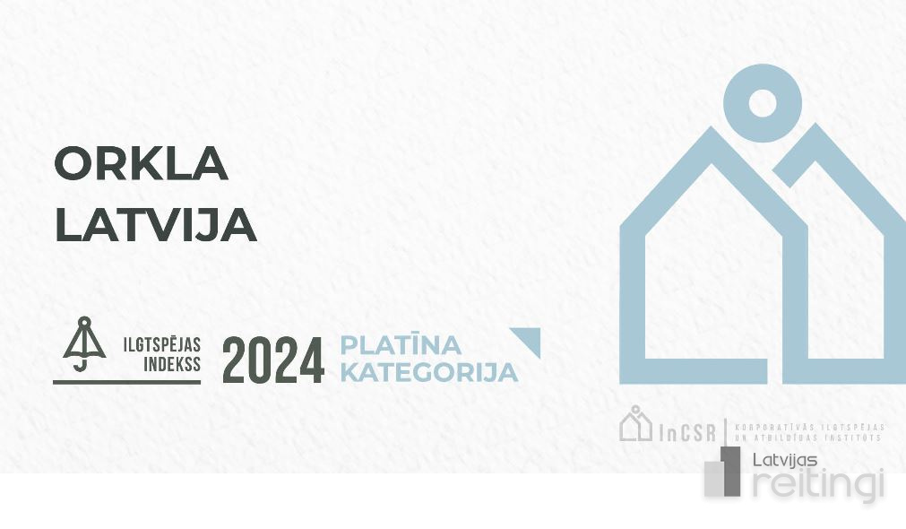 Ceturto gadu piedaloties biedrības "Korporatīvās ilgtspējas un atbildības institūta" (InCSR) organizētajā Ilgtspējas indeksa novērtējumā, "Orkla Latvija" pirmo reizi saņēm platīna godalgu. Šis sasniegums ir apliecinājums uzņēmuma padarītajam ilgtspējas jomā, kā arī apņēmībai veidot ilgtspējīgu uzņēmējdarbību un nepārtraukti strādāt pie vides aizsardzības, produktu drošas ražošanas un atbildīgas resursu izmantošanas.
