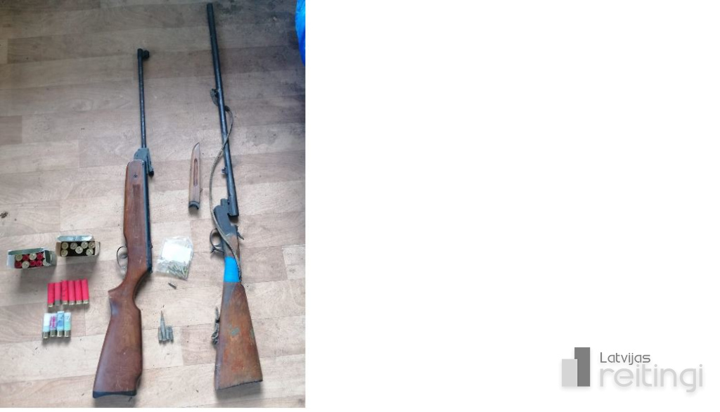 Sankcionētas kratīšanas laikā policijas darbinieki atsavināja arī vienstobra medību bisi, mazkalibra bisi, 44 gabalus patronas, 80 litrus nezināmas izcelsmes alkohola un ierīci alkohola izgatavošanai.